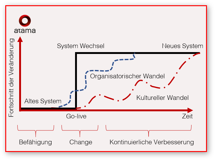 Die Change-Strategie und der Ablaufplan müssen in das Gesamtkonzept eingebettet sein. Im Mittelpunkt stehen dabei die Mitarbeiter, welche die Veränderung nur tragen, wenn sie diese auch akzeptieren. Da es kein Standardrezept gibt, ist vielmehr die Entwicklung eines auf die Situation des Unternehmens massgeschneidertes Vorgehend notwendig, mit dem die gewünschten Ziele erreicht werden können. Unsere Leistungen: